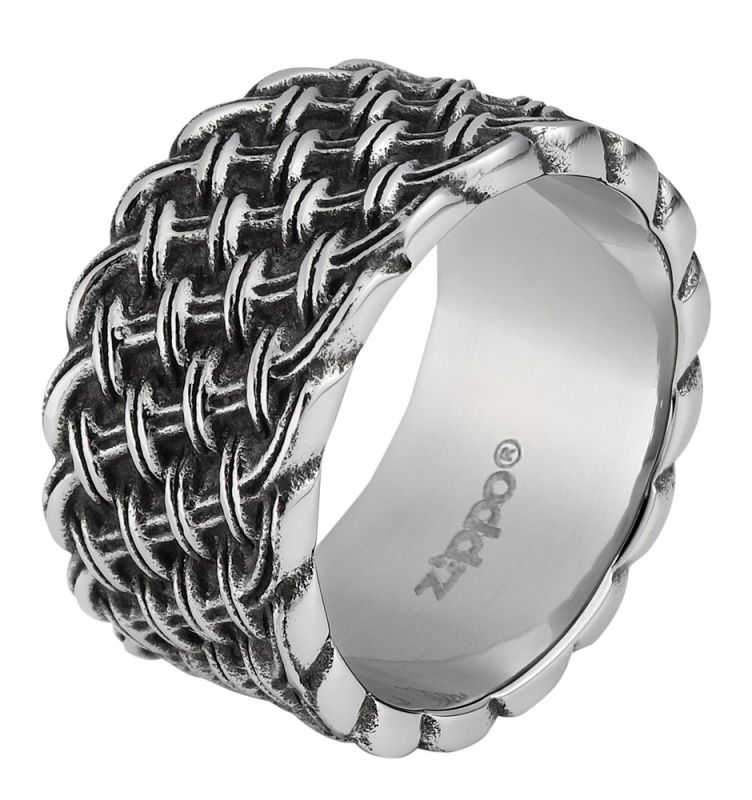 Кольцо ZIPPO, серебристое, с плетёным орнаментом, нержавеющая сталь, 1,2x0,2 см, диаметр 19,7 мм