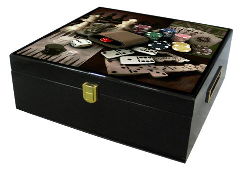 Набор для игры в карты, шахматы, нарды, шашки, домино. 2 колоды карт. 5 кубиков. 200 фишек. 2 футляра для бросание костей.
