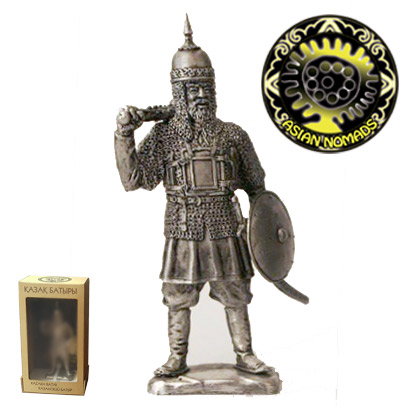 In 1465 partofthe Kazakh tribe sheaded by Genghis Khan’s descendants sultans Zhanibek and Kerey seceded from Abulkhair Khan and moved to Mogulistan, thus declaring an independent government which was called Kazakh Khanate. Batyrs andmilitary estate played a key role in the development of new Khanate. “Batyr”, sort of a title, wasn’t inherited, but awarded for specialmilitary merits and valor in battles. Quality and configuration of armour and weapons depended on the Batyr’s welfare. Protective ammunition consisted of a shortened coat of mail, a breastplate, a helmetand a shield. A club and asword were the combat weapons.